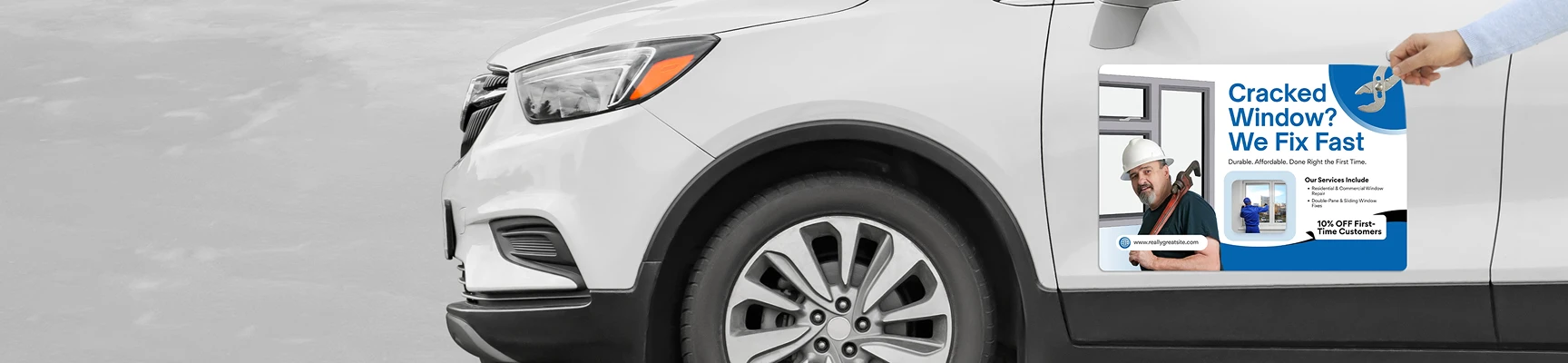 Turn your vehicle into a moving billboard with custom car magnets. Designed to stay put in the elements, they display your branding clearly on any metal surface. Ideal for service pros, real estate agents, and delivery drivers.
